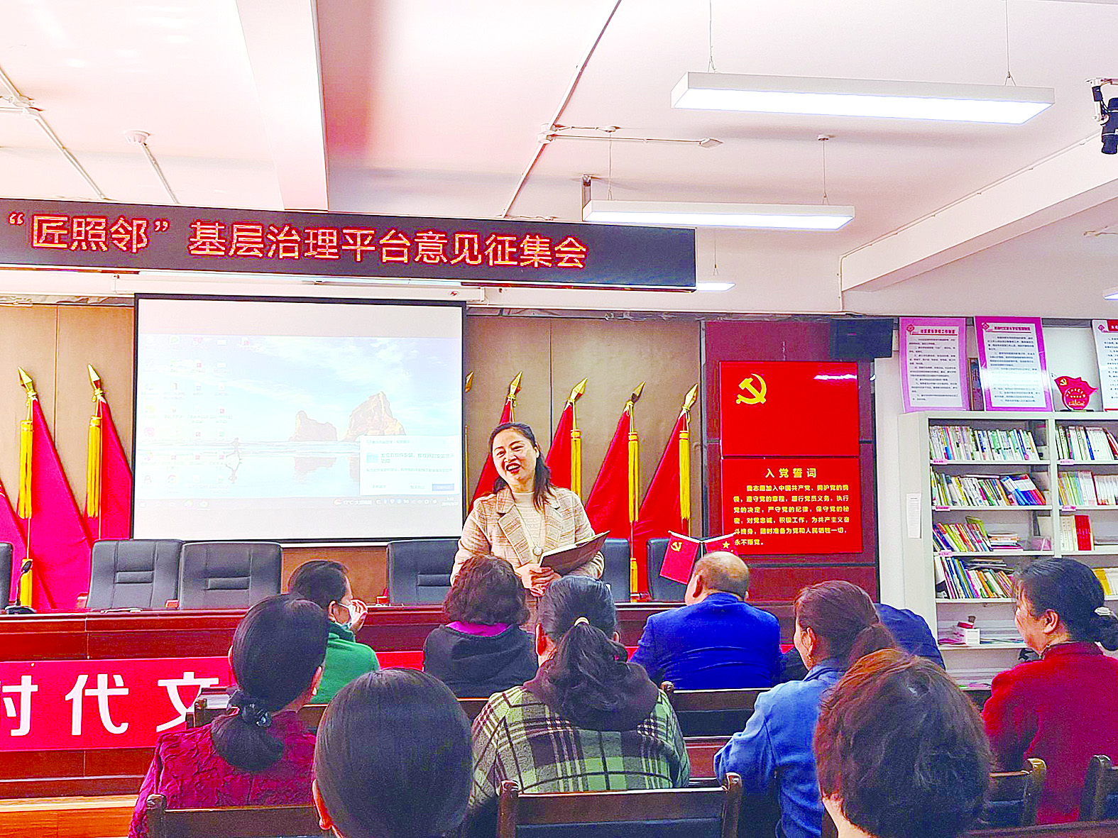 张红霞在逸都花园小区党支部开展“匠照邻”意见征集。 受访者供图