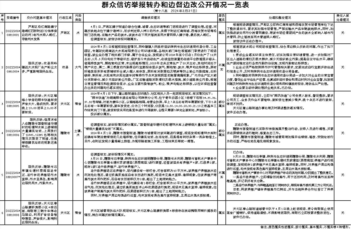 群众信访举报转办和边督边改公开情况一览表