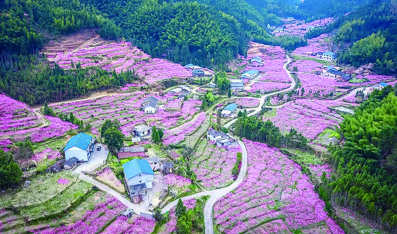 繁花不仅在盛开在田园,更在乡村山头尽情绽放。