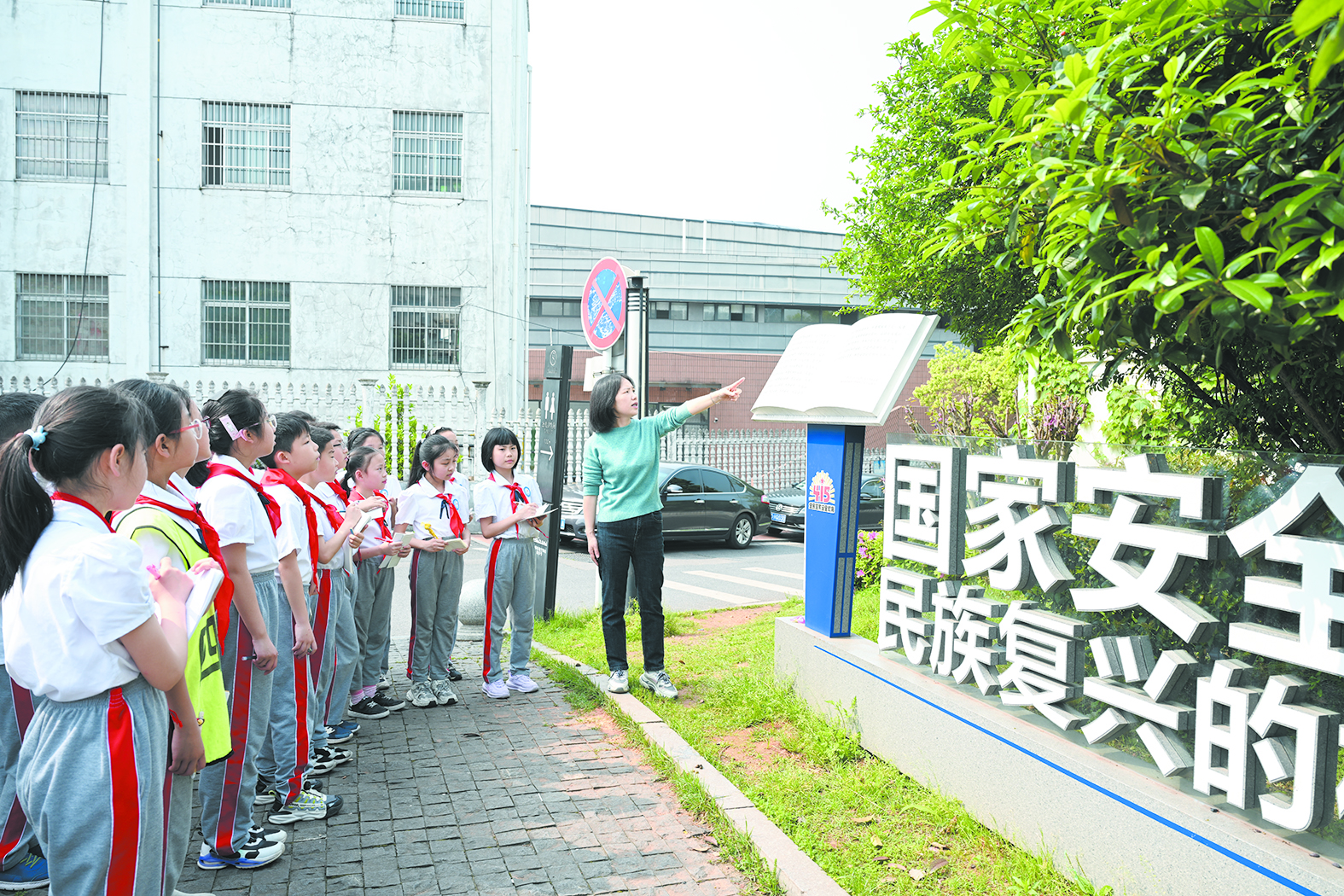 4月15日,石峰区总体国家安全观主题公园开园仪式在田心街道踢金岭广场举行。图为学生在新开园的主题公园学习全民国家安全教育日相关知识。 株洲日报全媒体记者/李逸峰 通讯员/仇昱又 摄