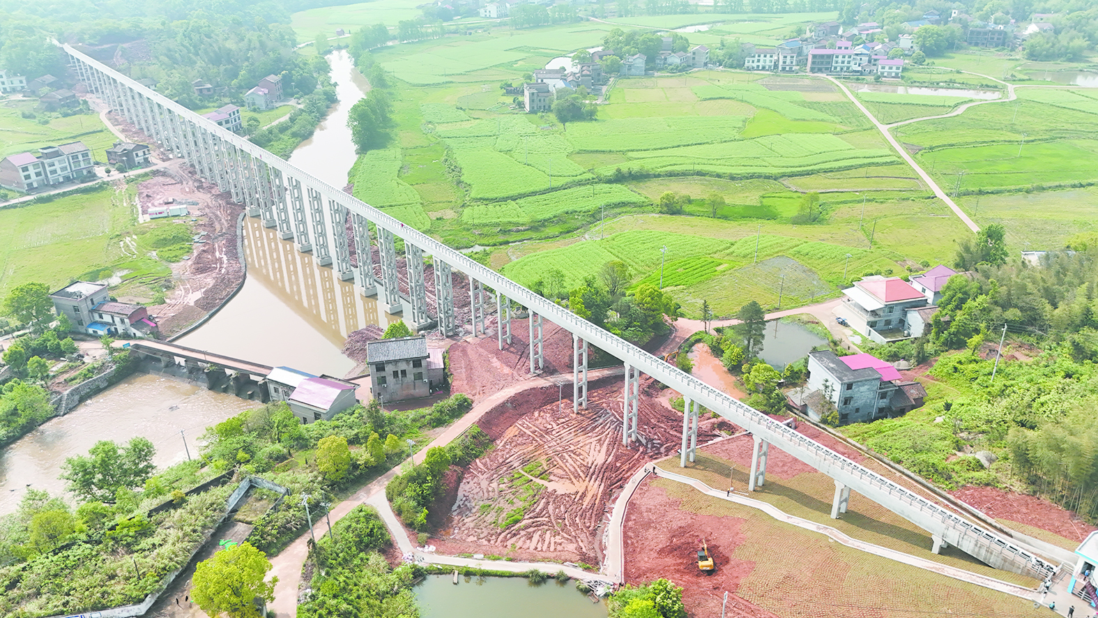 通水当天,江西省萍乡市排山镇梅林村党支部书记黄建特地赶到现场,望着哗啦啦奔腾的水流,他内心的喜悦溢于言表:“以前遇到干旱天要整宿整宿地抽水保灌,现在渡槽打通了‘梗阻’,村里的农田再不必‘喊渴’了,发展村集体经济也有了充足的水资源保障。”