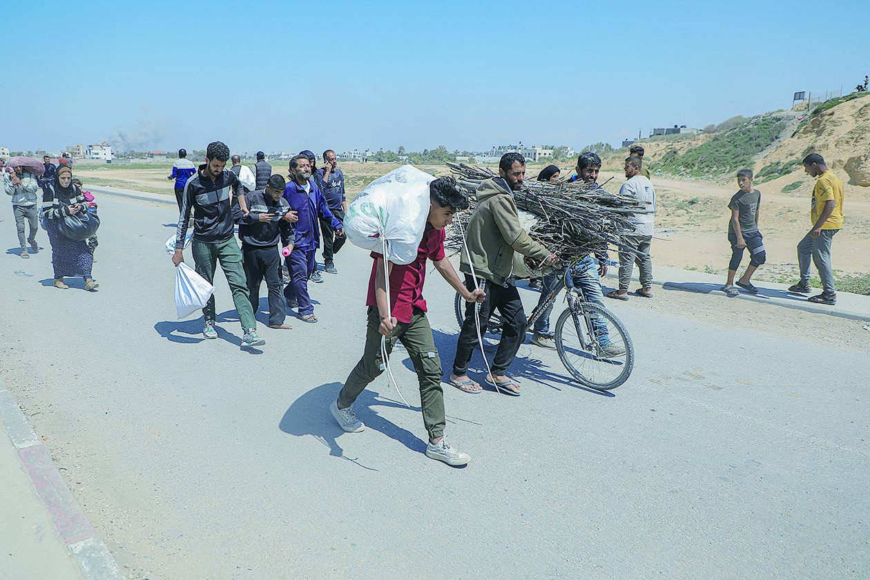 4月14日在加沙地带中部拍摄的向北返家的人群。 新华社发(里泽克·阿卜杜勒贾瓦德 摄)