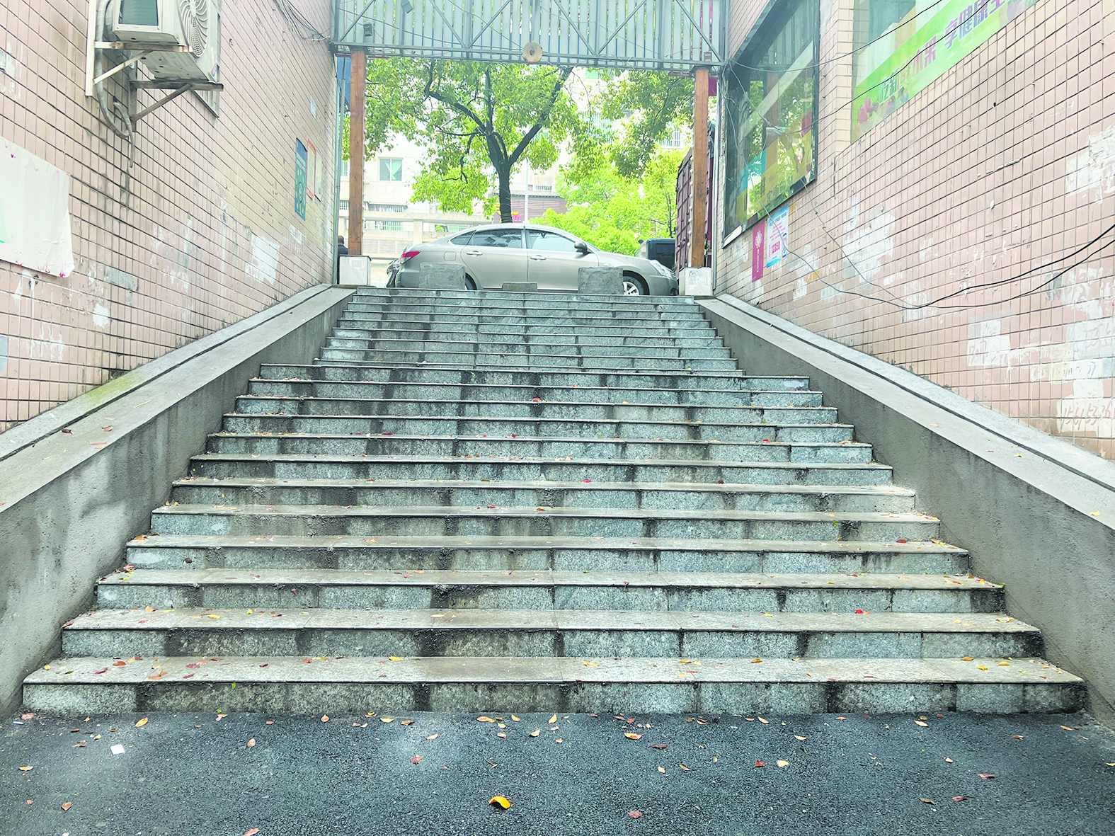 ②改造后的锻压新区台阶,被铺上了大理石。记者/姚时美 摄