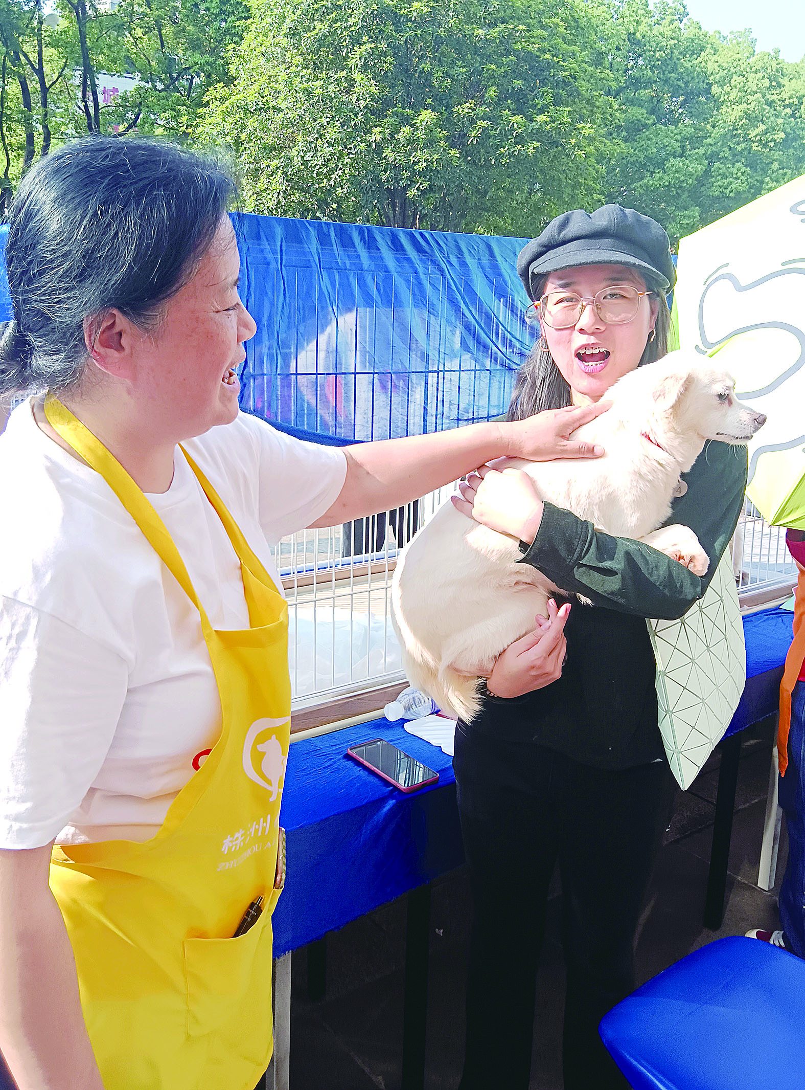 当天,市犬类收留场所、市小动物保护协会与市公安局综合管理支队在这里举行第九届株洲领养日暨文明养犬宣传活动,34只小可爱来到这里等待领养它的爸爸妈妈。领养是免费的,大家只要带着爱心前来就可。活动现场,不但有志愿者们发放文明养犬宣传资料、开展养犬咨询,还有宠物医疗机构为领养的小可爱提供办理养犬证等服务。图为市小动物保护协会会长王莉莎(左),将一只萌萌的串串狗交给新主人(右)。
