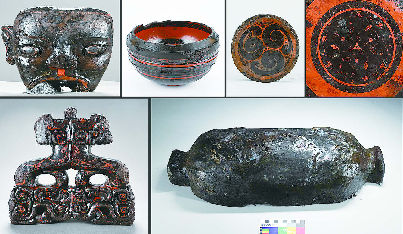 这是安徽淮南武王墩主墓室出土的部分漆器。 新华社发(安徽省文物考古研究所 供图)