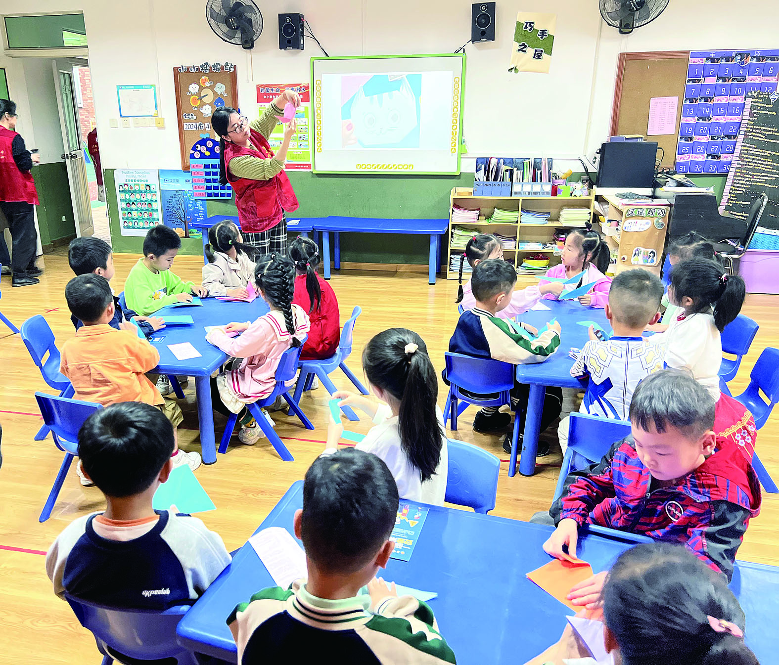现场,志愿者老师为孩子们带来有趣的绘本故事《十一只猫做苦工》,然后指导小朋友们一起手工制作“折纸猫”,激发孩子们的阅读兴趣,提高动手能力。
