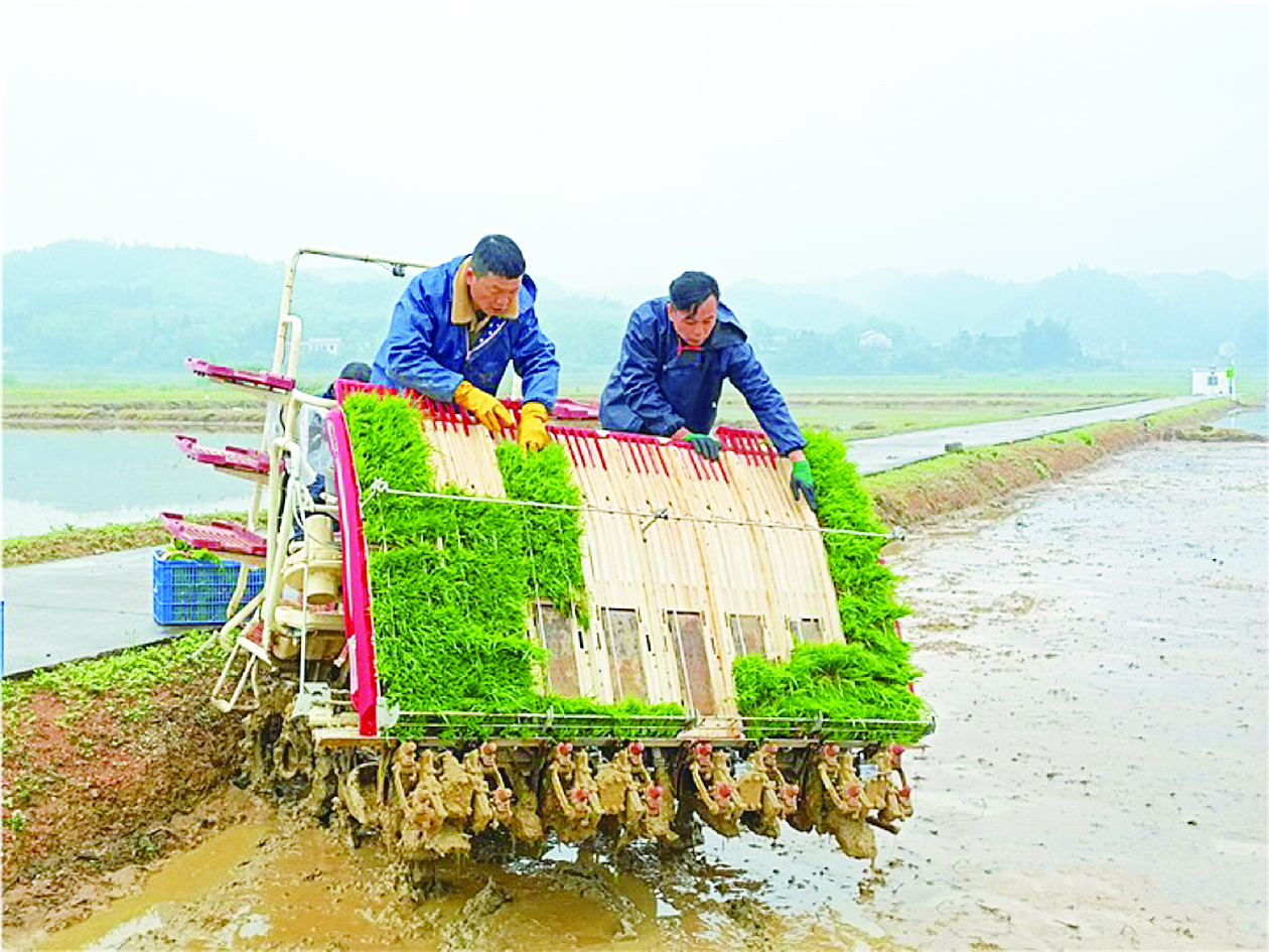 株洲日报讯(全媒体记者/邹怡敏 通讯员/王雨喧 郭璋) 4月6日下午,位于渌口区龙门镇果田村的柏连阳院士科研团队试验示范基地,村民驾驶插秧机在水田里来回穿梭,不到15分钟,嫩绿的秧苗就铺满了一块两亩多的农田。
