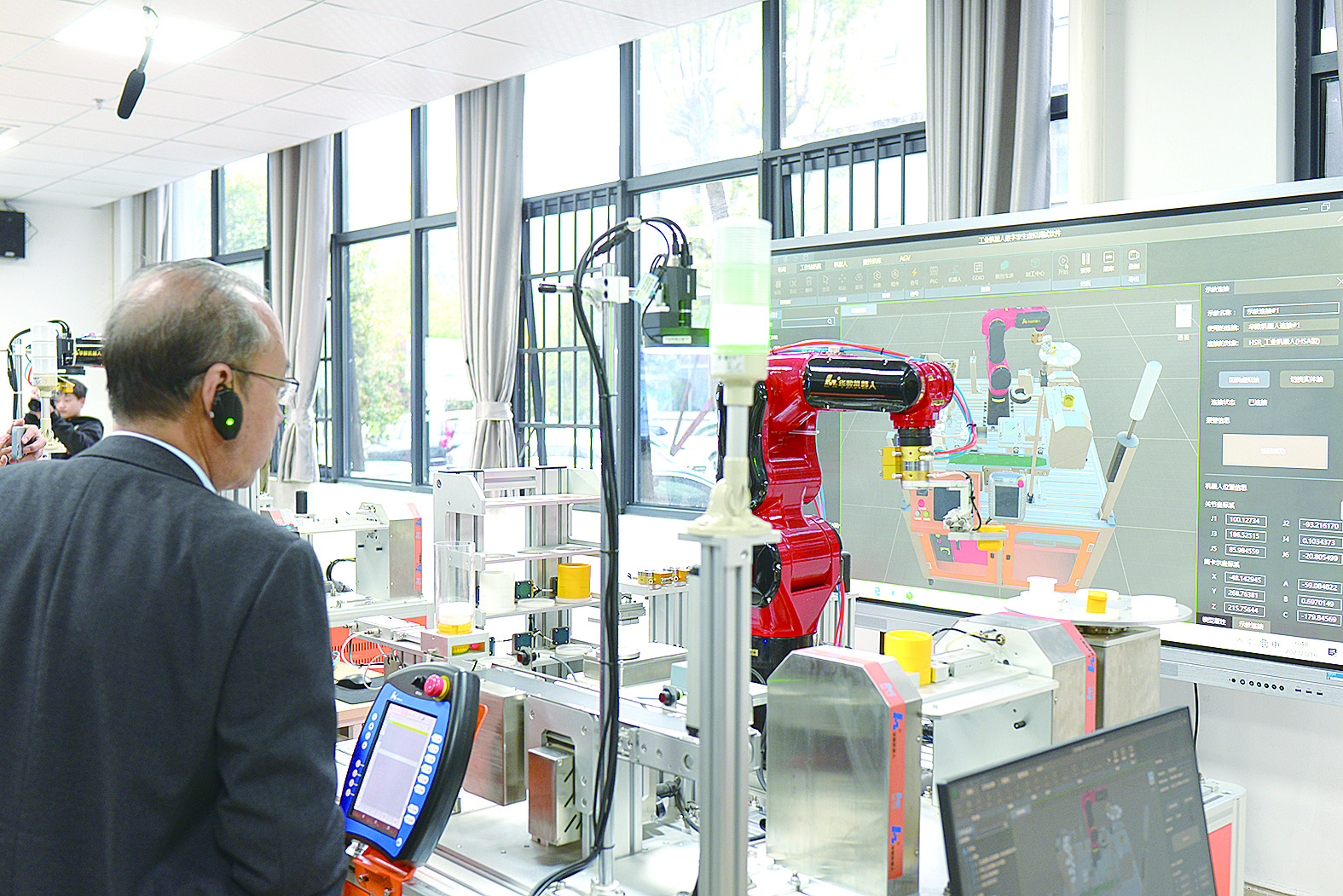 高职院校开展工业机器人应用教学。