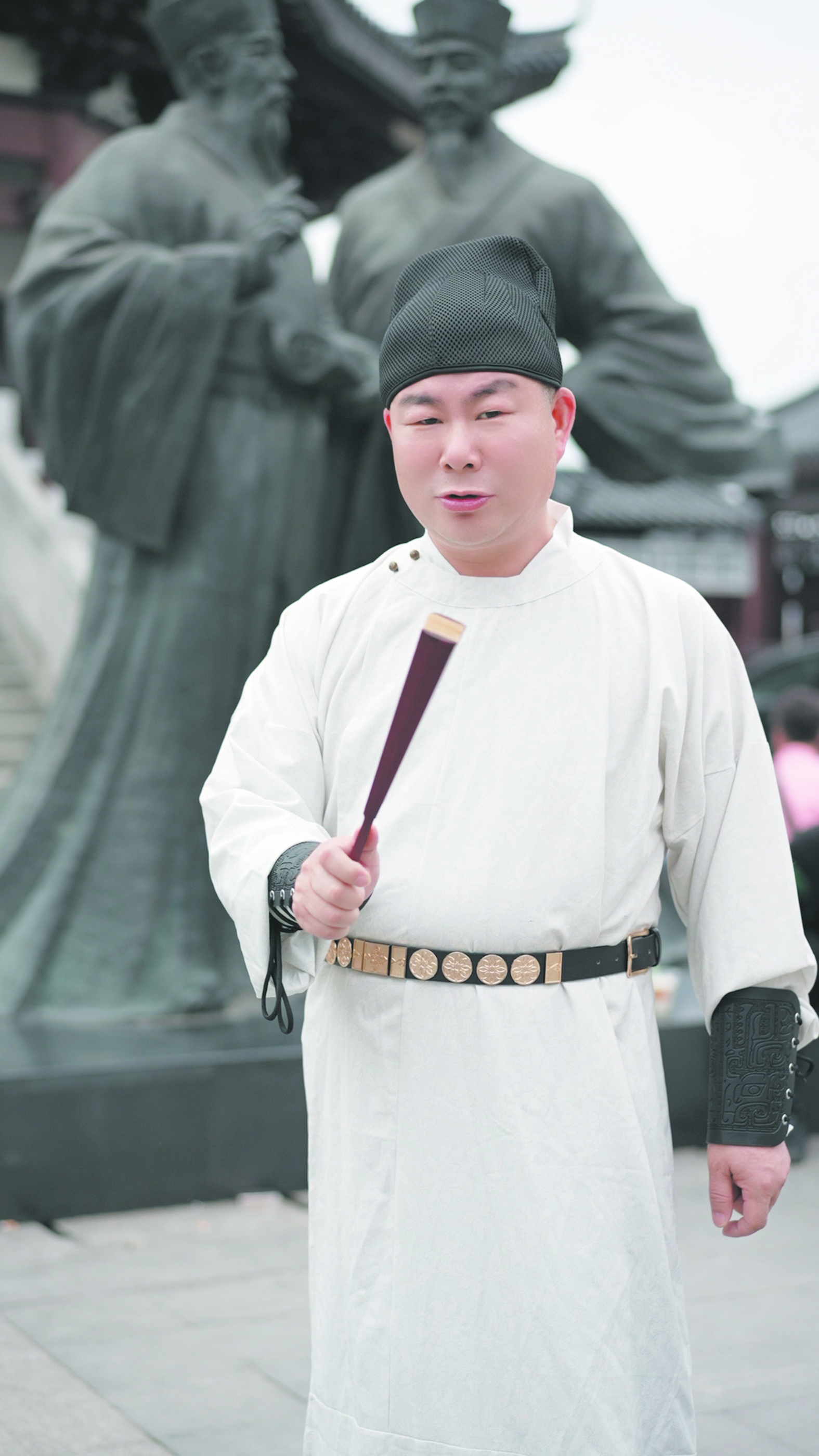 一把折扇、一身汉服、一份从容……4月22日,芦淞区建宁街道分袂亭,一位短视频创作者吸引了不少市民争相与其合影。他叫李波,这是他最近一次完成的“演出”任务,也是他在分袂亭进行过的千百次讲解中的一次。
