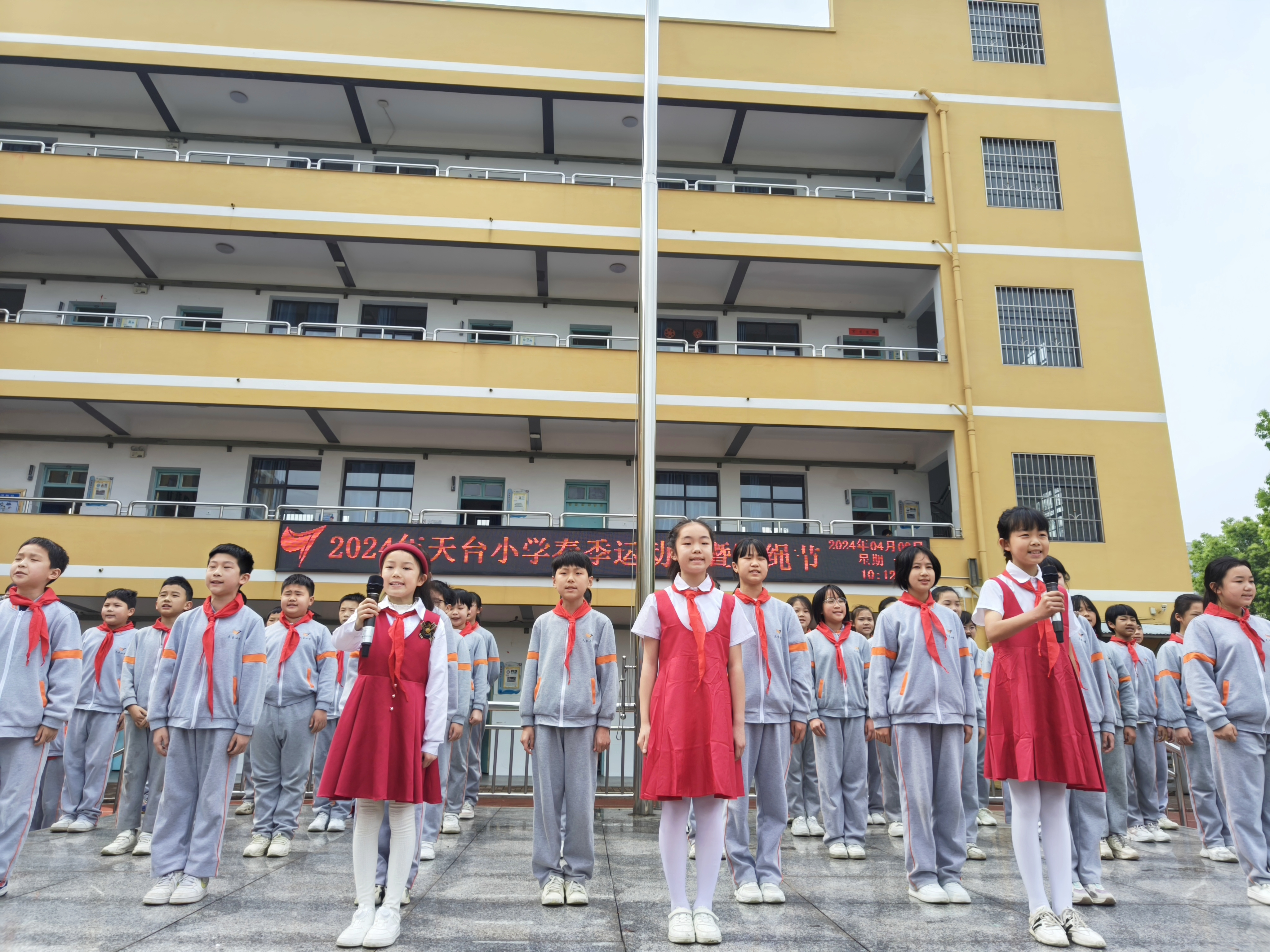 和暖春日,天台小学校园里彩绳翻飞,活力四射,2024年春季运动会暨跳绳节正在火热进行。