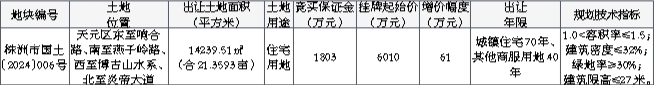 株洲市国有建设用地使用权网上挂牌出让公告 株洲市国土〔2024〕006号
