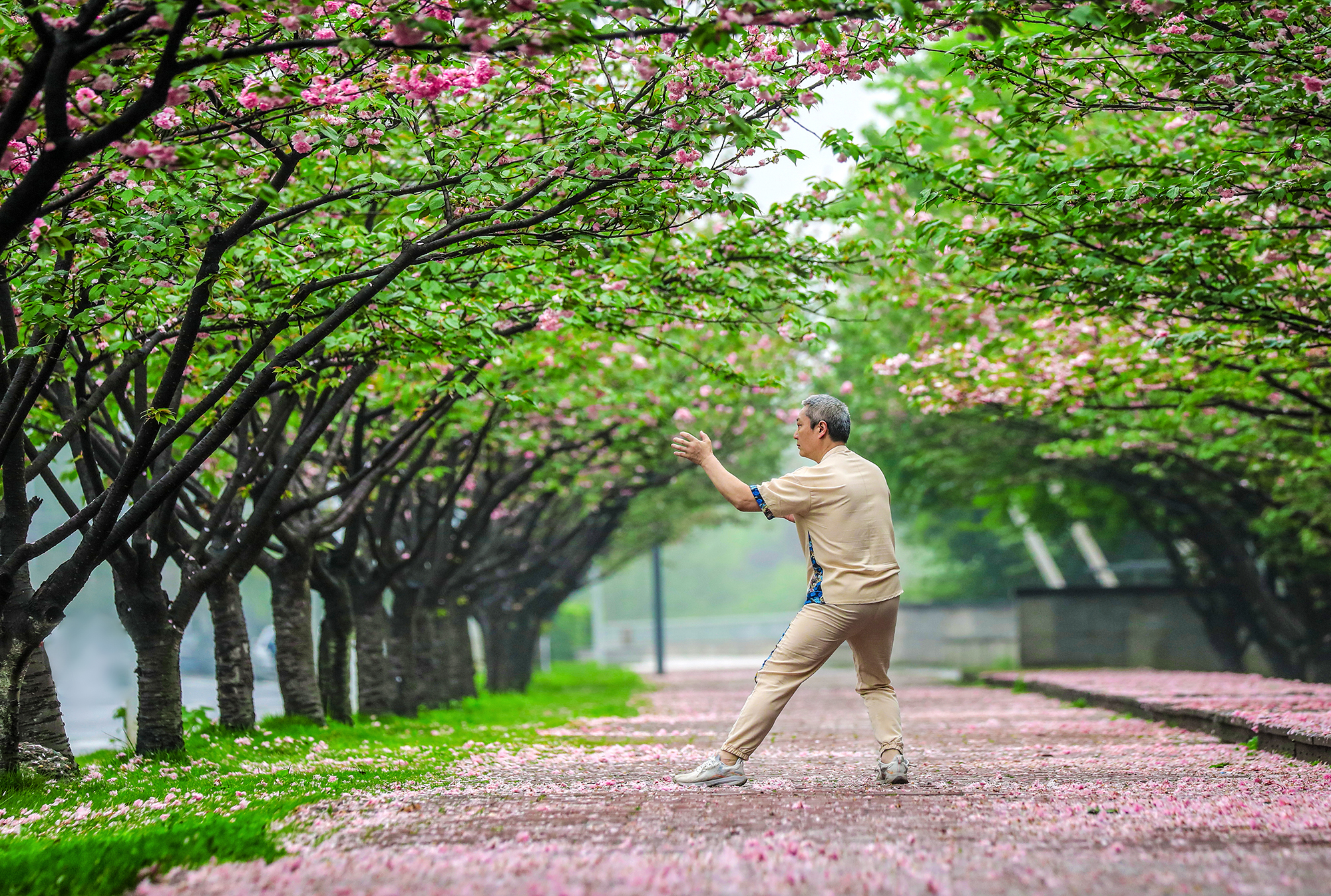 向春而行,与时光轻语,心事展颜。花雨缤纷,瓣瓣回风舞袖,穿尘而过的一袭背影,缱绻着烟雨江南的万般柔情;行云流水的太极,鹤骨松姿,道法自然,气韵流转于天地;五光十色的泡泡,在爷孙肆意的追逐中,如梦如幻,欢欣雀跃;童梦牵动着纸鸢,翩跹一舞,从茵茵草地腾向湛湛蓝天。