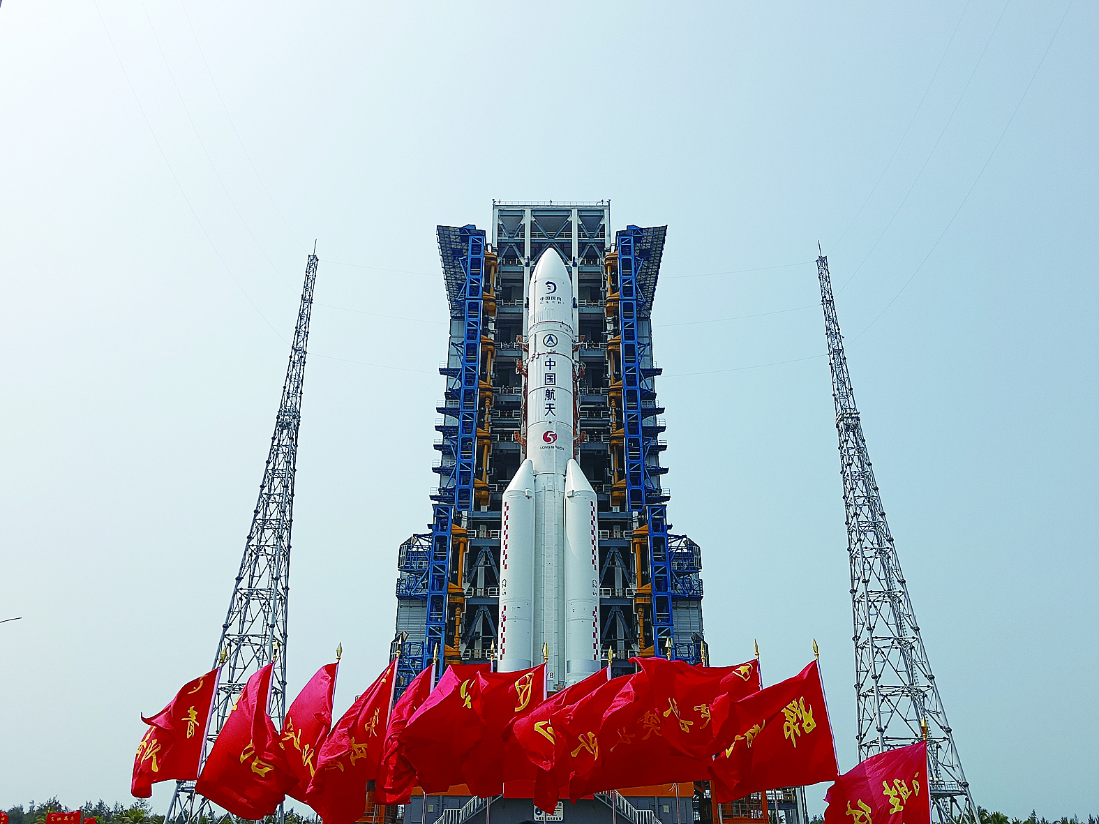 新华社北京4月27日电 记者从国家航天局获悉,4月27日,嫦娥六号探测器和长征五号遥八运载火箭在中国文昌航天发射场完成技术区相关工作后,器箭组合体垂直转运至发射区,计划5月初择机实施发射。