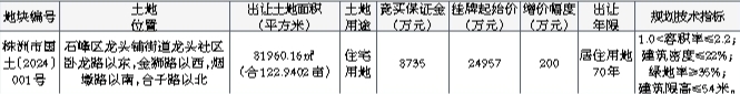 七、本次网上挂牌出让的详细资料和具体要求,见《株洲市网上挂牌出让国有建设用地使用权规则》、《株洲市国有建设用地使用权网上出让系统操作说明》和《株洲市国有建设用地使用权网上挂牌出让须知》等文件,有意竞买者可登录株洲市公共资源交易平台******查询。申请人可于2024年4月25日至2024年5月22日,在网上浏览或下载本次挂牌出让文件,并按上述文件规定的操作程序参加竞买。