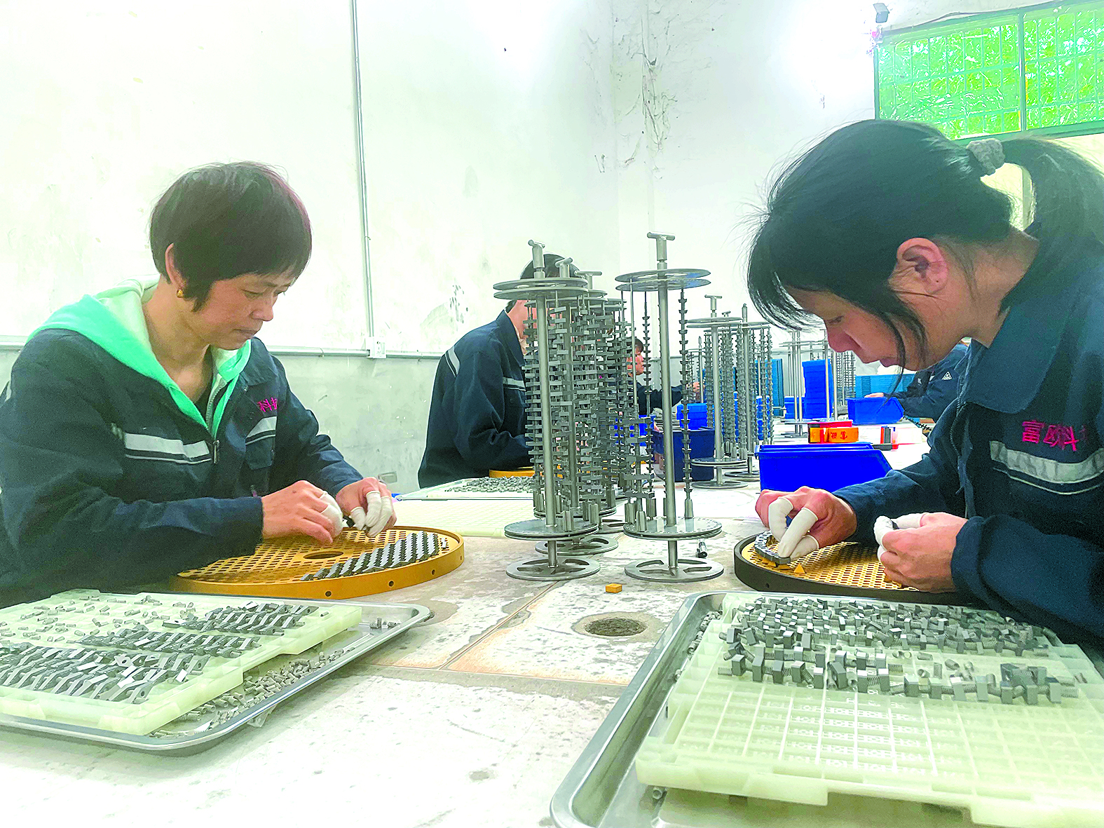 富欧科技工人们对涂层前的数控刀片精胚装舟。黎世伟 摄