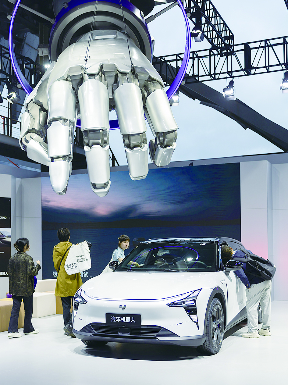 人们在世界设计之都大会上参观极越汽车(2023年9月30日摄)。 新华社记者 王翔 摄