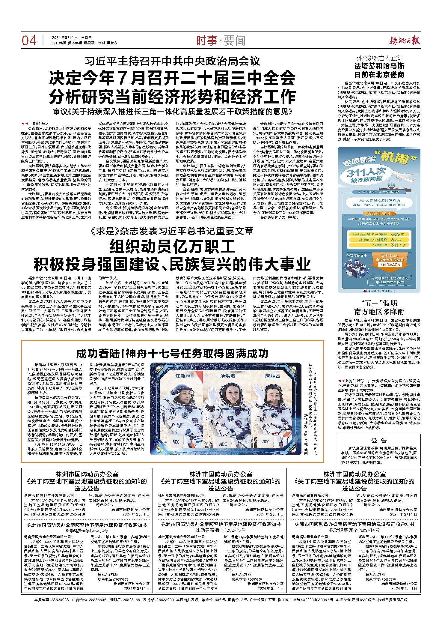 决定今年7月召开二十届三中全会 分析研究当前经济形势和经济工作