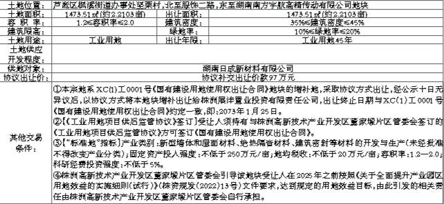 位于芦淞区枫溪街道办事处坚栗村,北至服饰二路,东至湖南南方宇航高精传动有限公司地块一宗工业用地的出让方案已经芦淞区人民政府批准。从即日起向社会公开发布公告,公示期十日。主要内容如下: