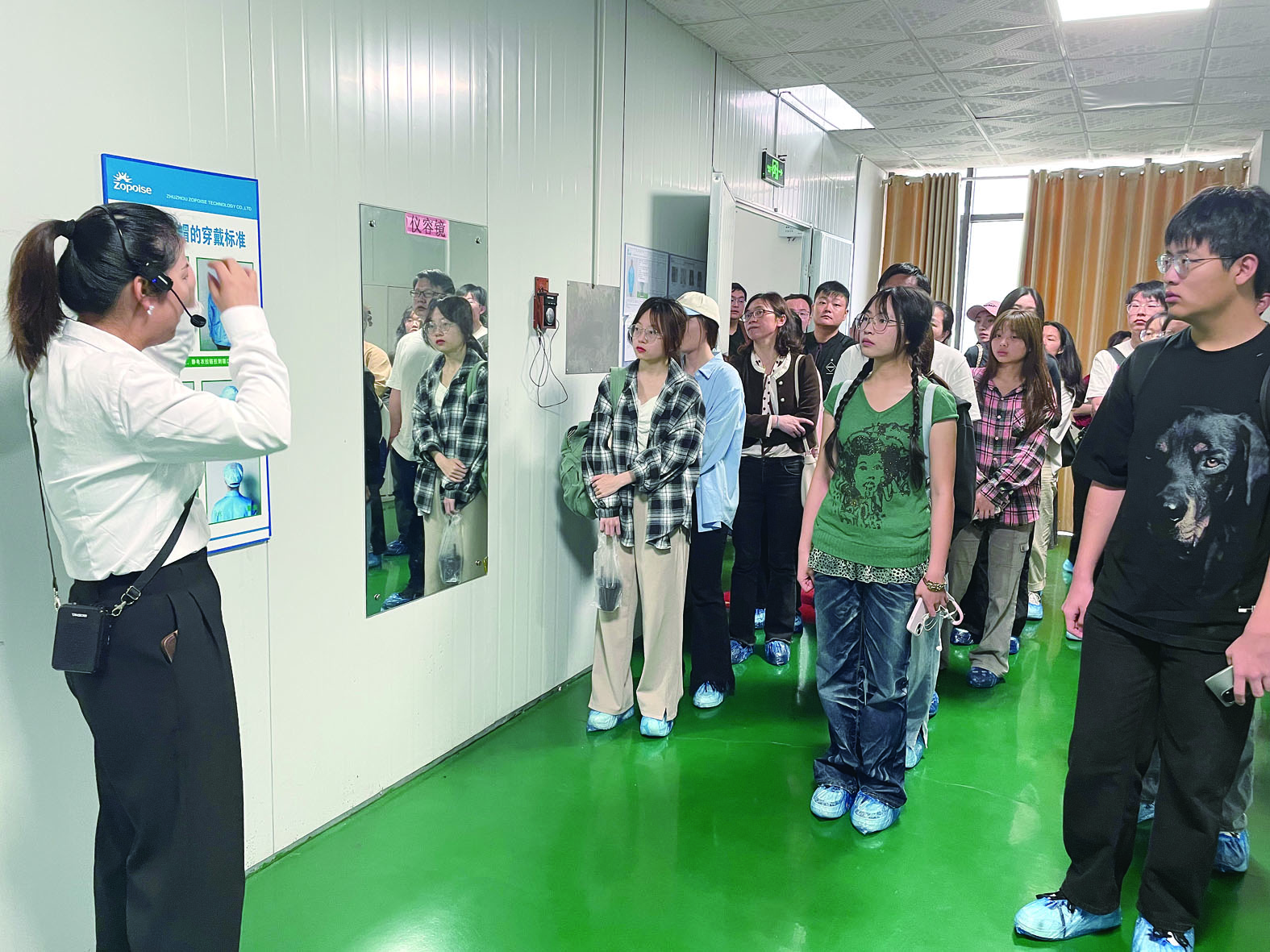 在首站众普森,讲解员带着众人参观了企业的生产线和检测中心。