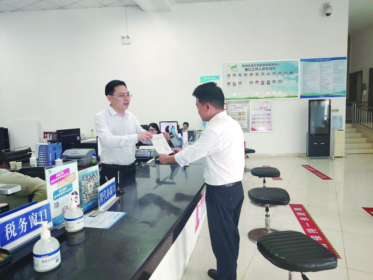 首张启用“行政审批专用章”的证照颁出。 记者/李逸峰 通讯员/文苗 摄