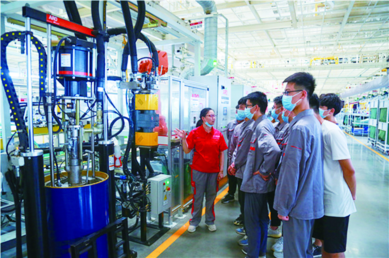 湖汽职院学生到北京汽车股份有限公司(株洲分公司)见习。 记者/戴凛 摄