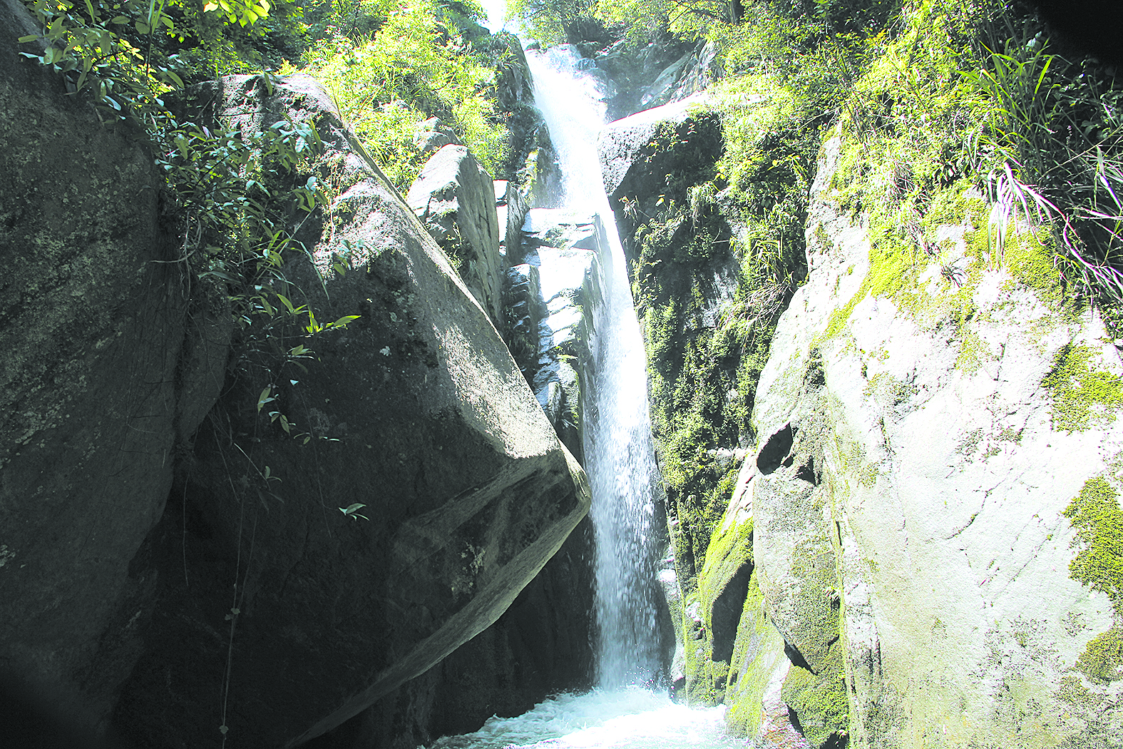 最近,炎陵县垄溪乡茶垅村村民在人迹罕至的原始次森林中,发现了一处原始瀑布群,一公里多路程中分布着4个瀑布,当地村民介绍,这些瀑布地处良好生态,背靠高山,水源充足,从未干沽过。图为在海拔1600多米处发现的“飞龙出峡”瀑布。 株洲日报全媒体记者/黎世伟