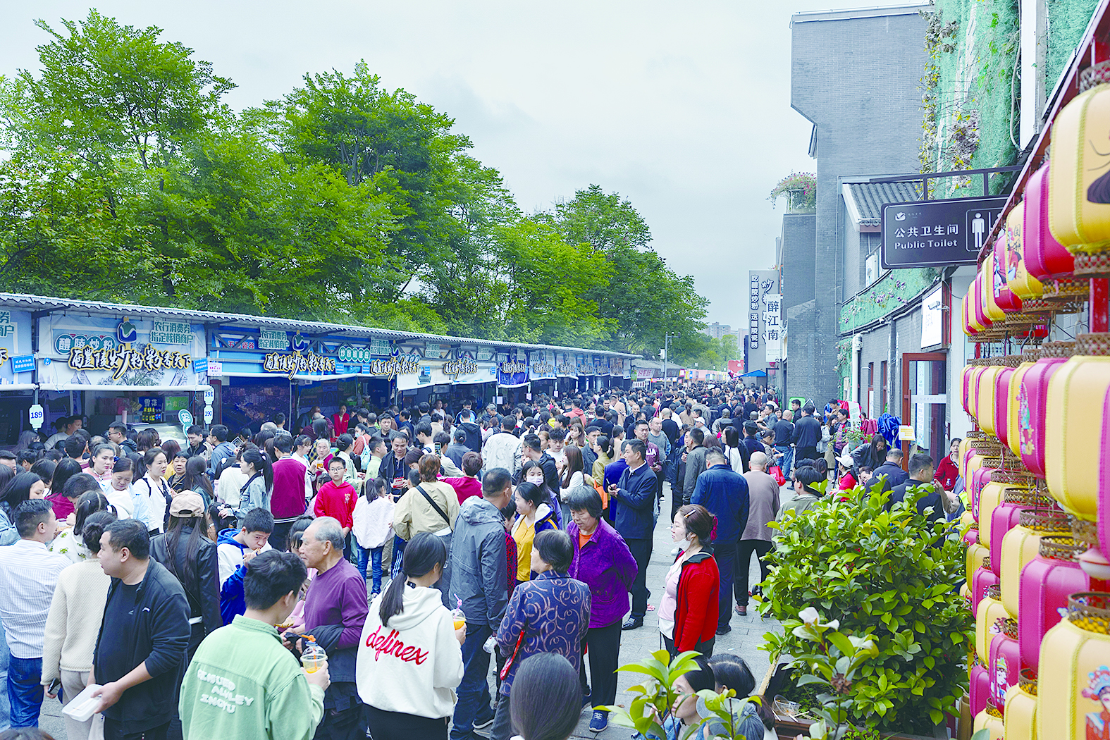 5月1日,炒粉节首日,主会场一江两岸人头攒动,粉香四溢。当天虽然户外天气凉爽,下午开始更有雨水“助阵”,可远道而来的游客依然热情高涨。