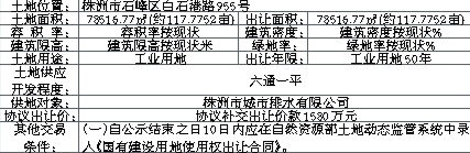 位于株洲市石峰区白石港路955号一宗工业用地的出让方案已经石峰区人民政府批准。从即日起向社会公开发布公告,公示期十日。主要内容如下: