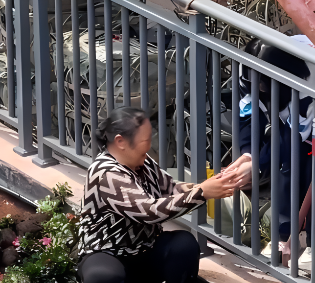 女孩们给教学楼种花的 叔叔阿姨送水