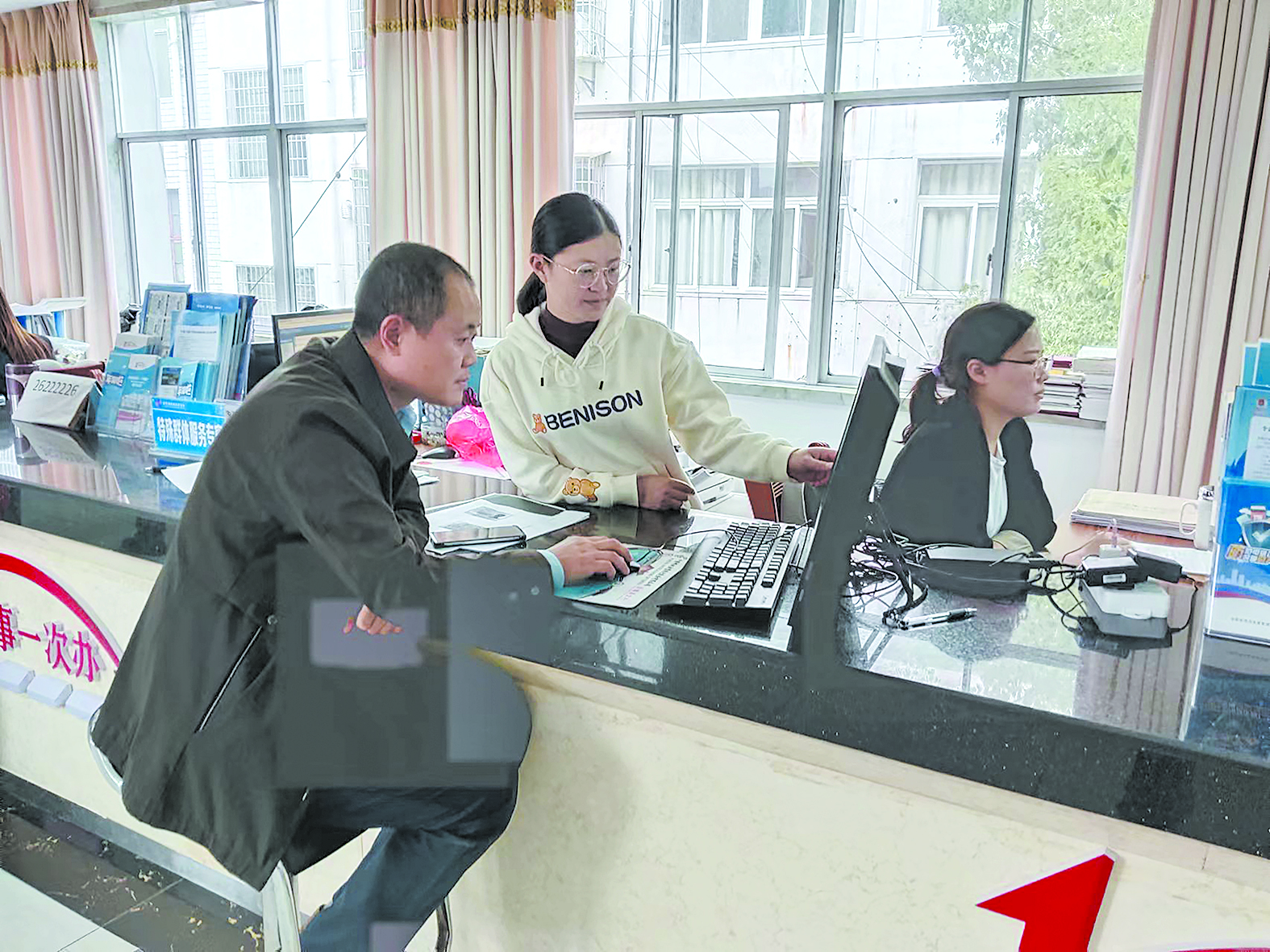 企业员工(左)在县政务中心办理业务。 刘琦 供图