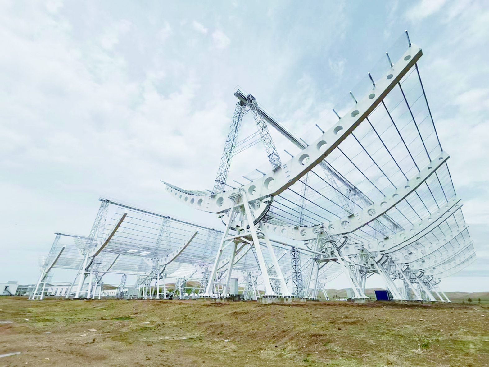 行星际闪烁监测望远镜是国家重大科技基础设施“空间环境地基综合监测网”(子午工程二期)的重大设备之一,采用一主站、两辅站的协同联测方式。其中,主站位于中国科学院国家空间科学中心明安图野外科学观测研究站,由3排南北长140米、东西宽40米的抛物柱面天线组成,是目前我国口径最大的抛物柱面天线阵列。
