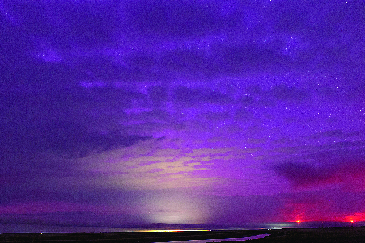图为5月11日深夜在黑龙江省佳木斯市松花江富锦段拍摄的极光。 新华社发