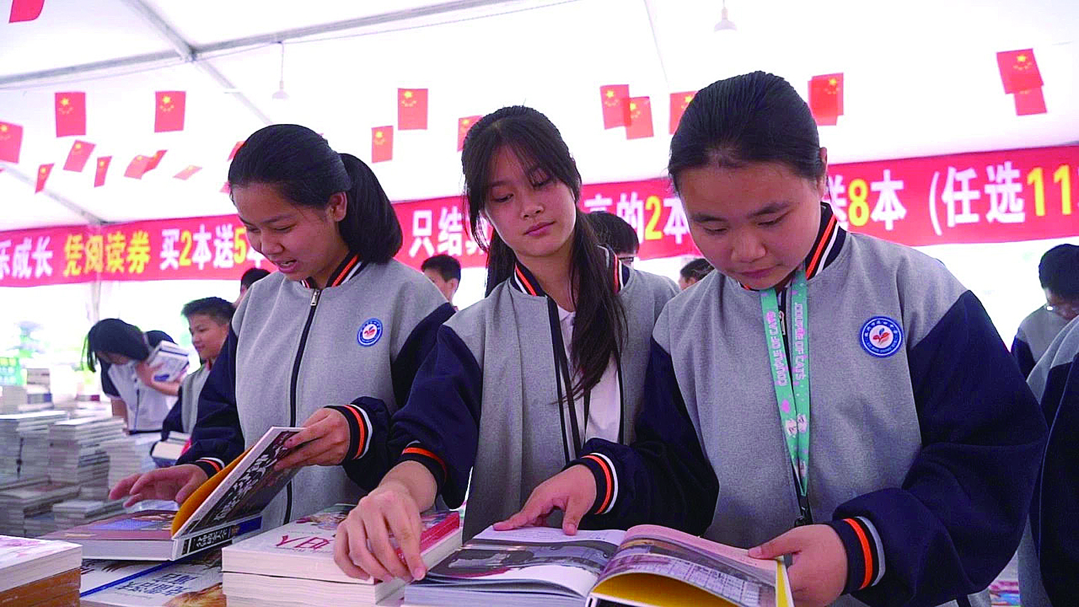 据了解,此次活动将持续至5月20日,现场开设党政、文学、艺术、教育、科技、少儿等图书专区,阅读爱好者可以在现场免费阅读,还可以享受“买2送5”“买3送8”“学习强国积分兑换购书优惠”等惠民福利。