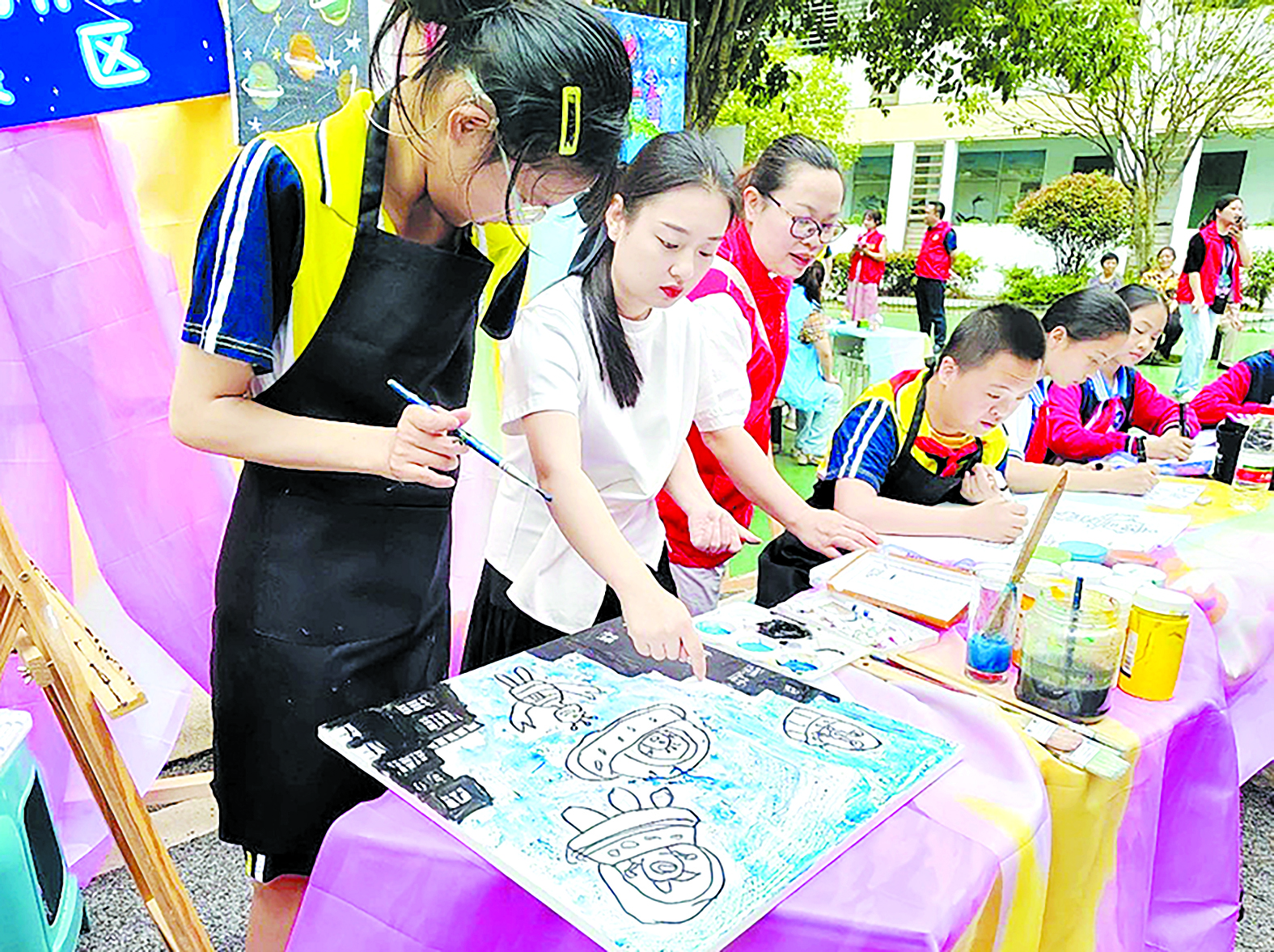 两校学生共同参与科技绘画。 通讯员供图