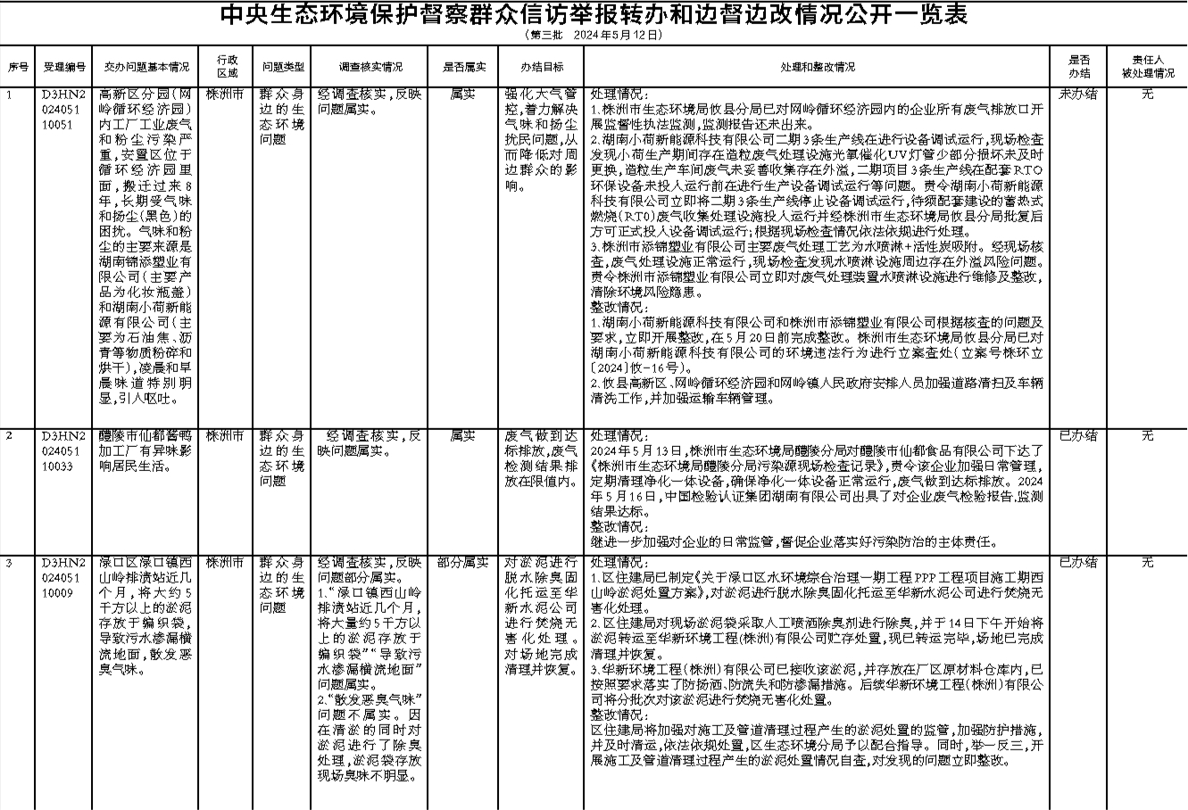 中央生态环境保护督察群众信访举报转办和边督边改情况公开一览表