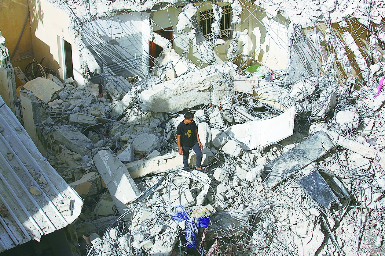 5月23日,在约旦河西岸城市杰宁,一名男子查看建筑受损情况。 新华社发(尼达尔·艾仕塔耶 摄)