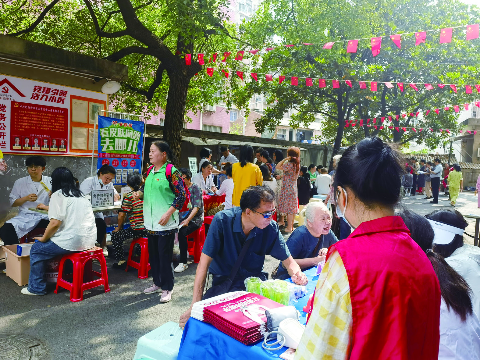 近日,在荷塘区三一歌雅郡小区、亿都随园的公益市集上,从清洗地毯、理发、血压血糖检测到肛肠疾病普查,再到口腔健康咨询、中医诊疗、法律咨询、政策宣讲,甚至是社区事务协商和现场退休认证,应有尽有。桂花街道各社区、小区举行公益活动时,“桂在有你志愿服务中心”成员跨社区、小区进行指导支持,链接资源,丰富了便民服务项目。