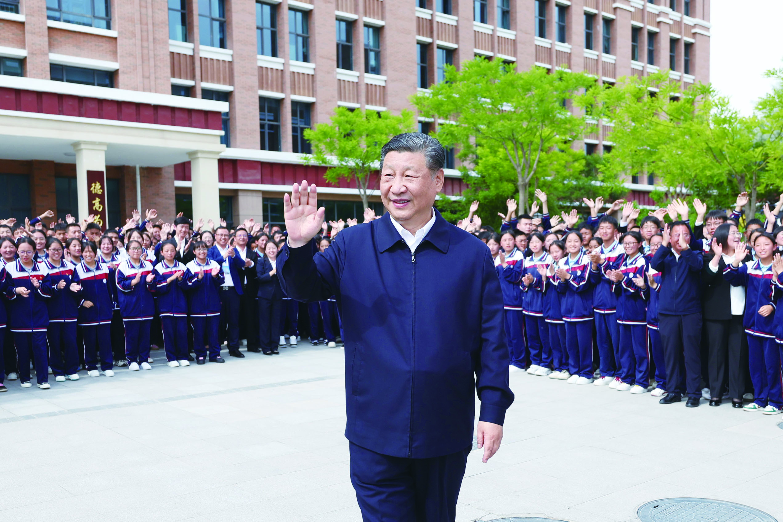6月18日至19日,中共中央总书记、国家主席、中央军委主席习近平在青海考察。这是18日下午,习近平在果洛西宁民族中学考察时,向师生们挥手致意。 新华社记者 鞠鹏 摄