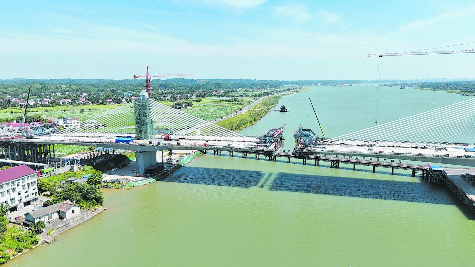 按照施工进度安排,8月底,可完成江心位置12号墩和13号墩间的桥面合龙,11号墩与12号墩,以及13号墩与14号墩之间的桥面,将于9月底合龙。