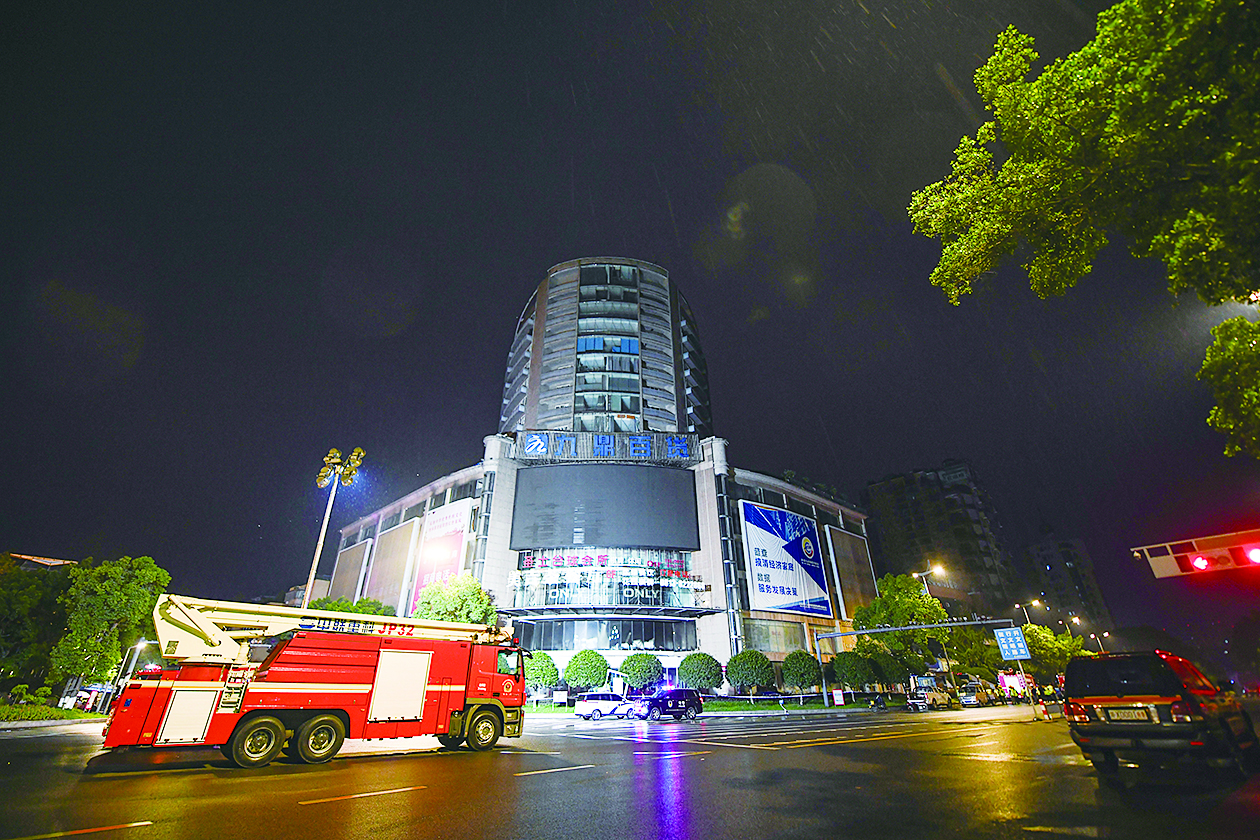 7月18日凌晨在四川省自贡市拍摄的“7·17”火灾事故搜救现场。 新华社记者 王曦 摄