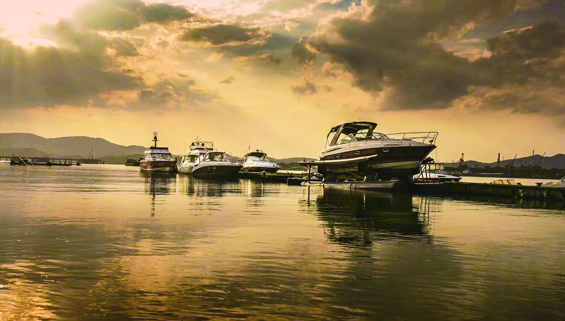 蓄势待发——石峰大桥附近的游艇。