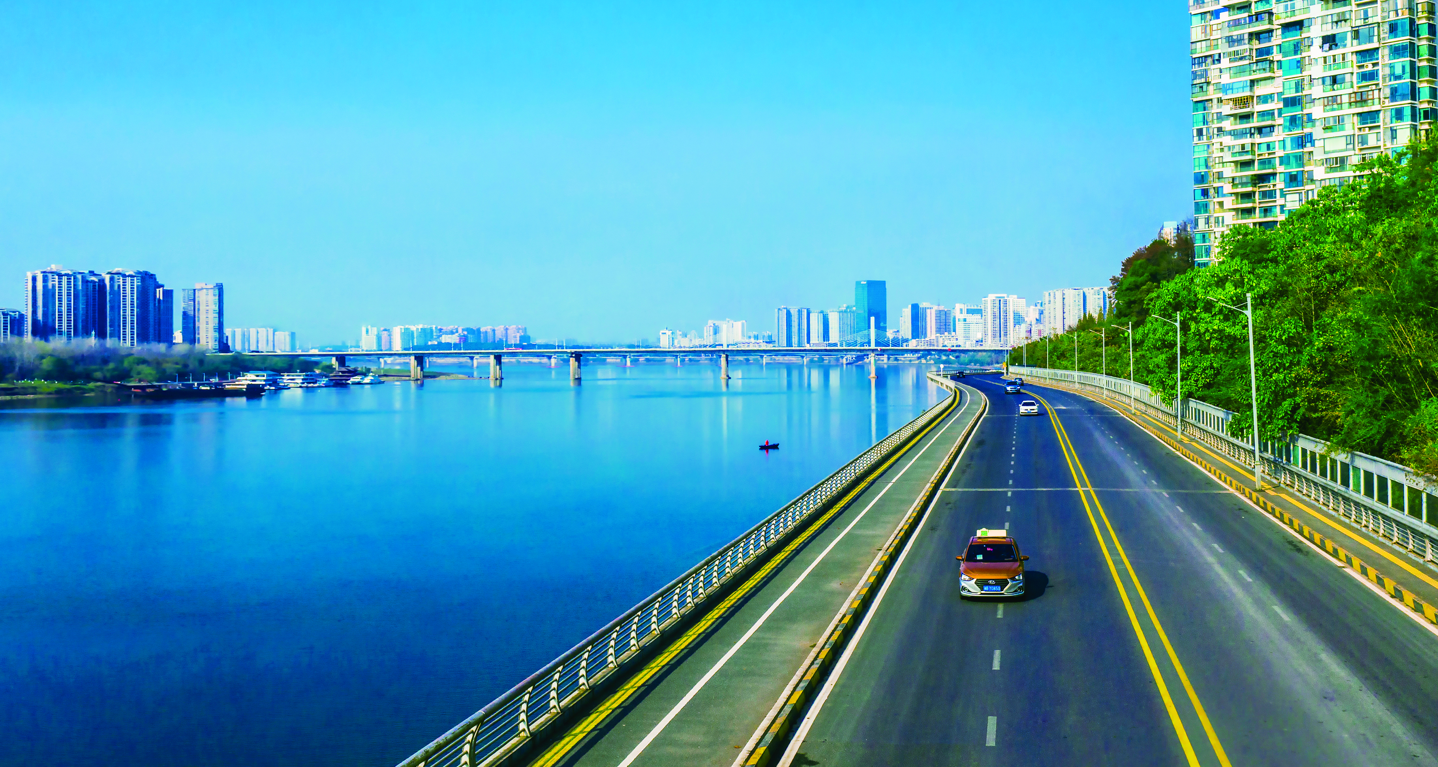 天蓝水美——山水国际小区旁的壮丽湘江。