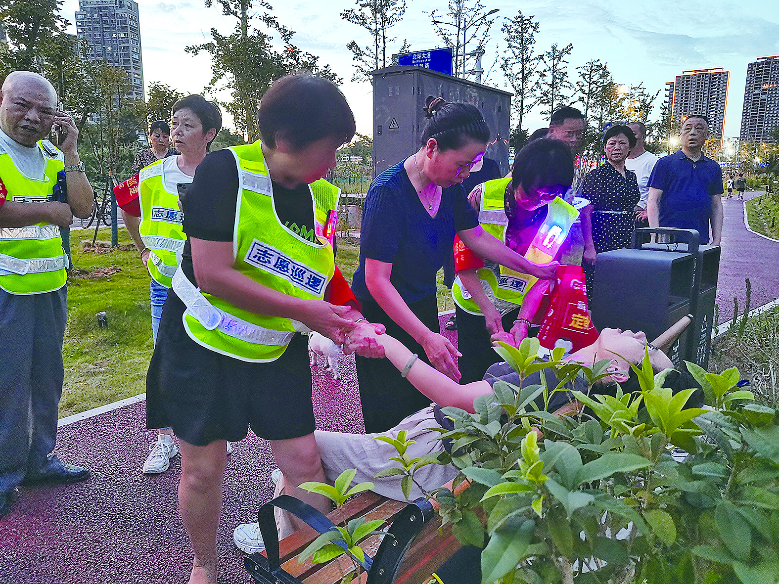 志愿夜逻队对夜跑中暑女子进行急救。 受访者供图