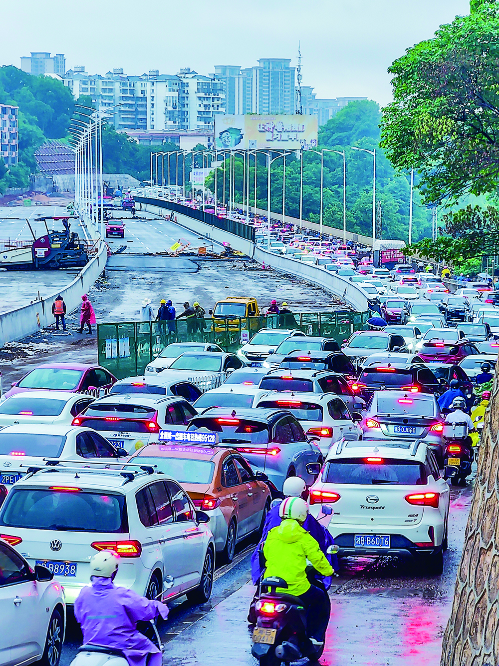 2024年6月17日,新桥还在加紧建设,老桥在早高峰时段的堵车场景。