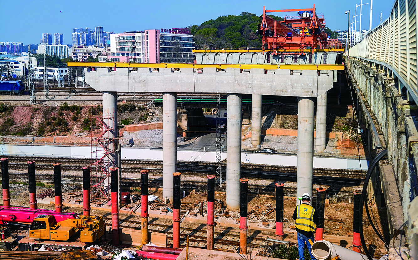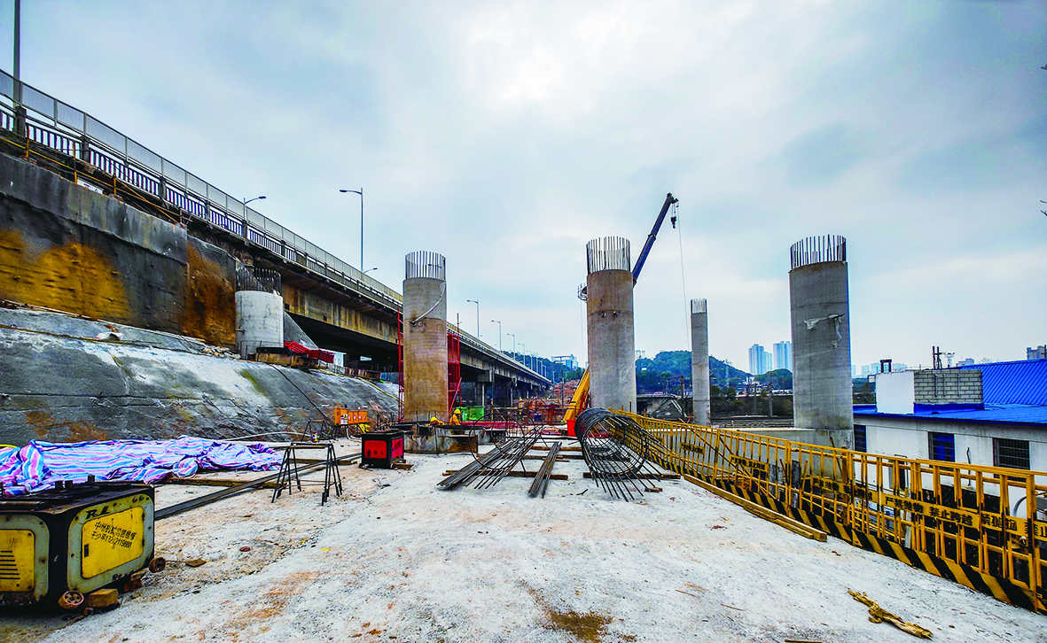 2023年2月24日,第一跨立柱建成,至年底,大桥拓宽工程完成全部26根桩基工程。