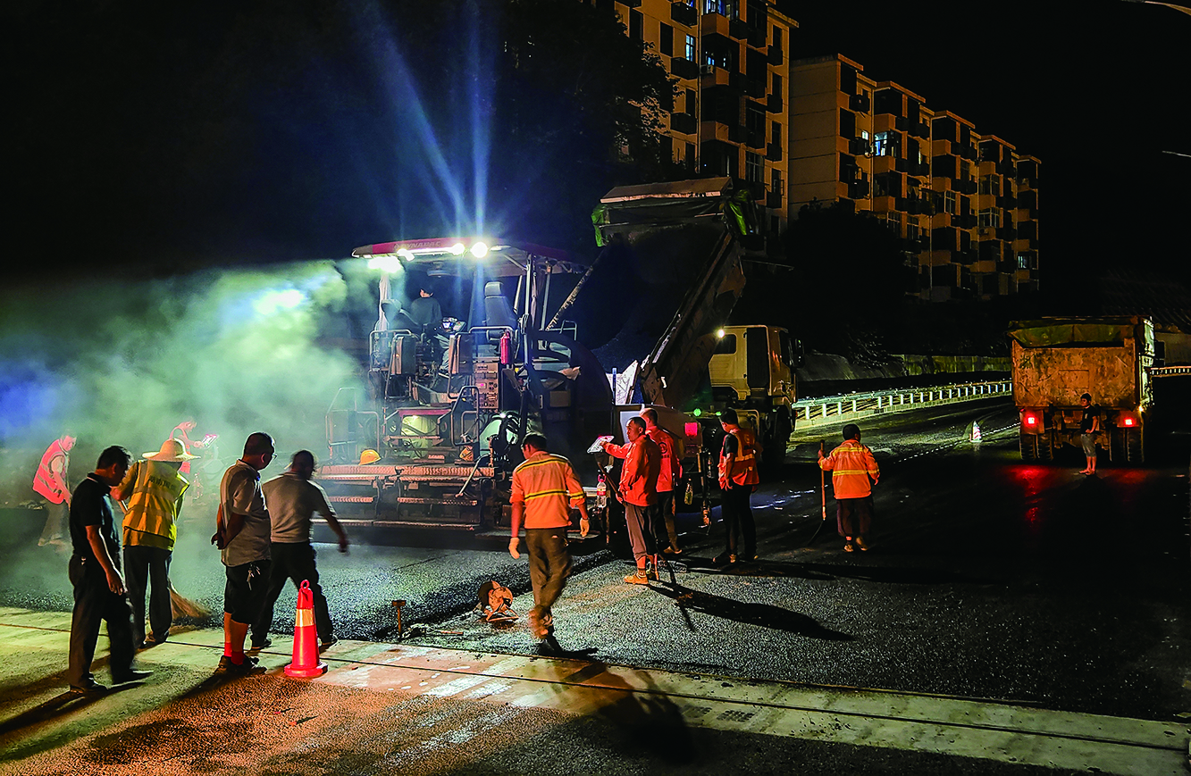 2024年6月28日,大桥北半幅路面在通宵铺设沥青,次日北半幅新桥开始通车。