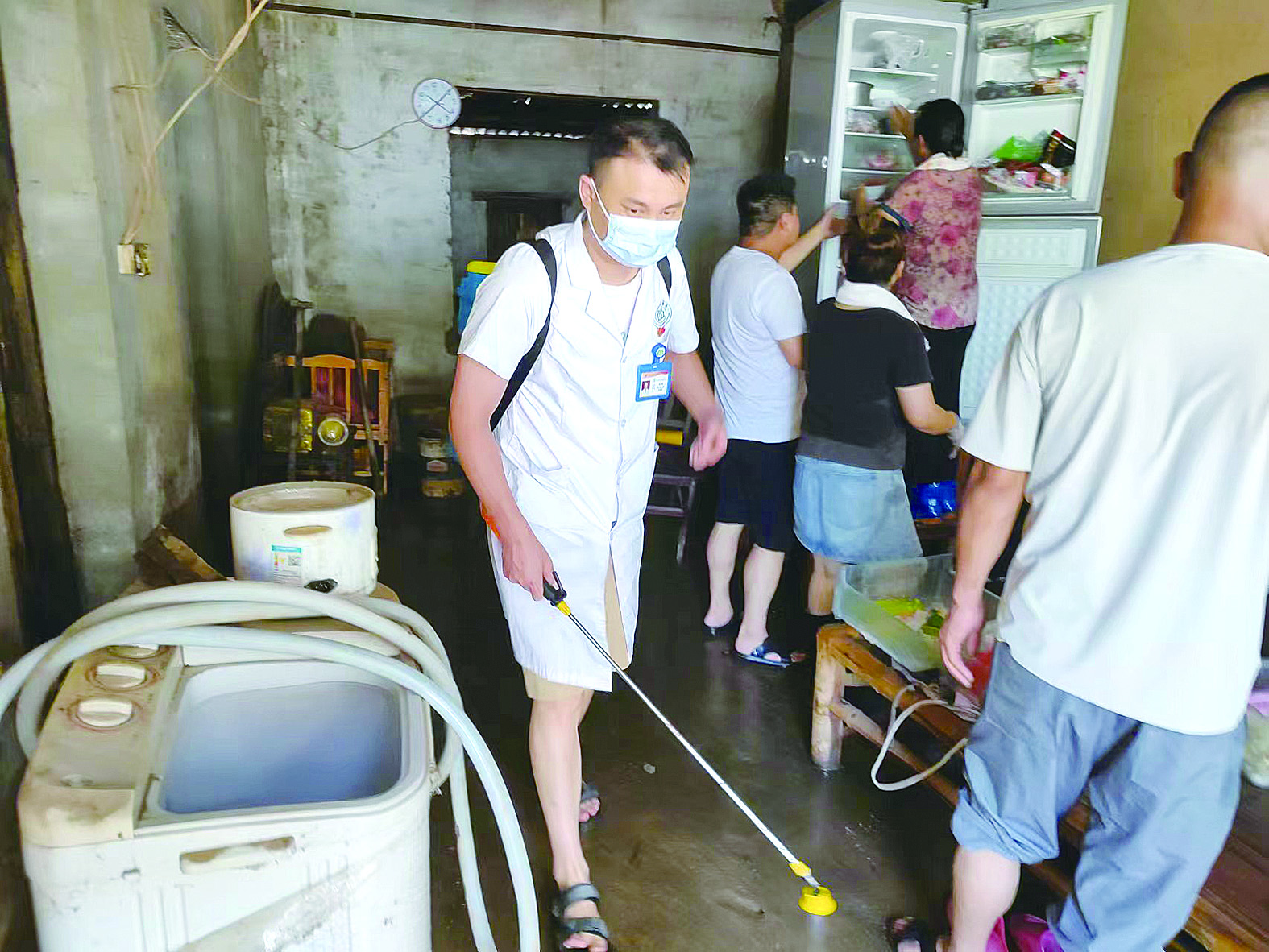 医护人员正对退水区域进行消杀处理。 受访者供图