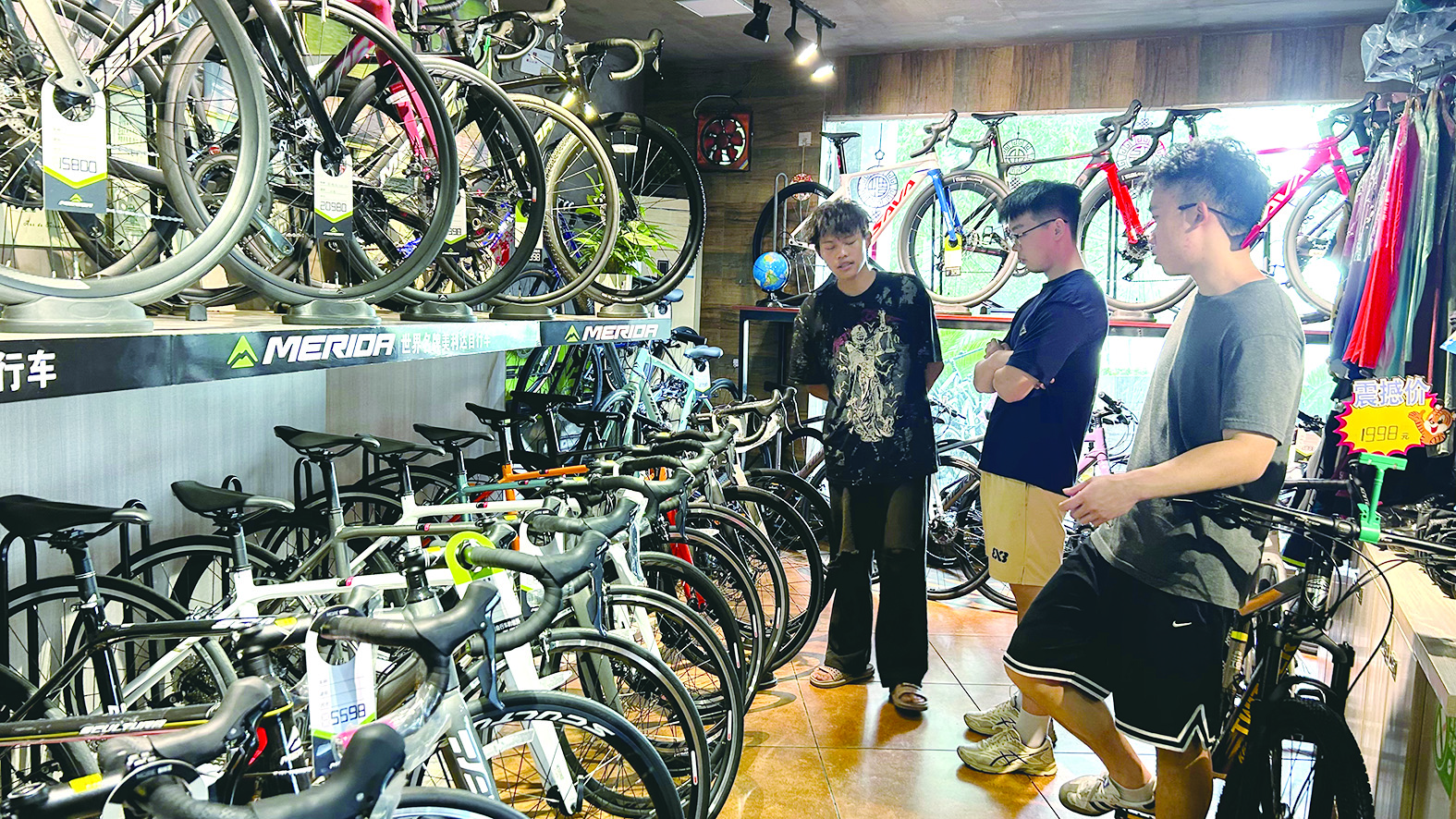 “近年来,自行车市场尤其是公路车市场比较火爆,我们从年初开店到现在,销售额持续增长。”从事自行车品牌代理10多年,张保伟从一个门店扩张到3个门店,品牌也逐渐丰富。他告诉记者,店内最受欢迎的品牌是美利达和喜得盛,仅美利达自行车每月可售出100辆左右。