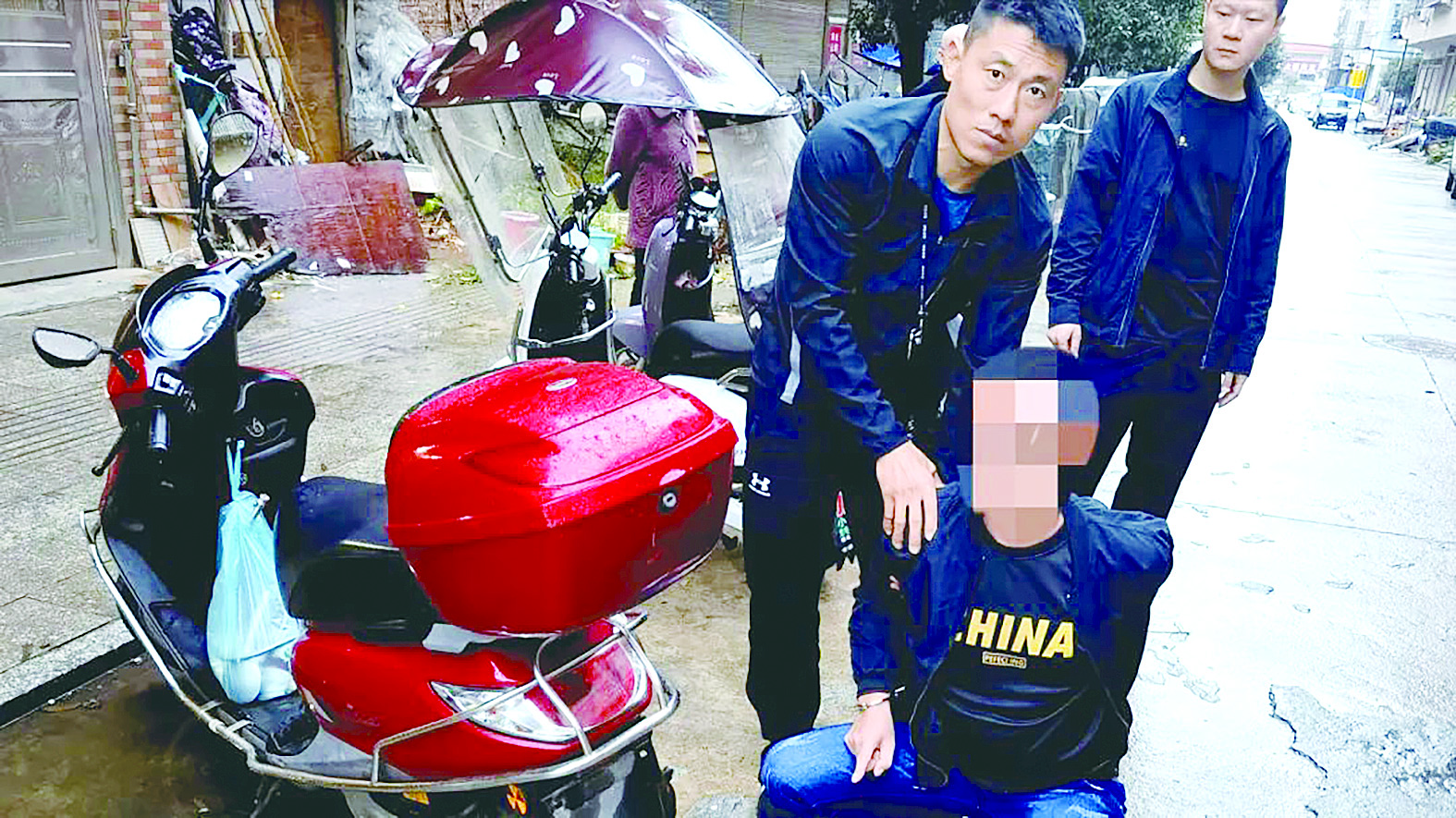 刑警张锦(左一)抓捕犯罪嫌疑人。 通讯员供图
