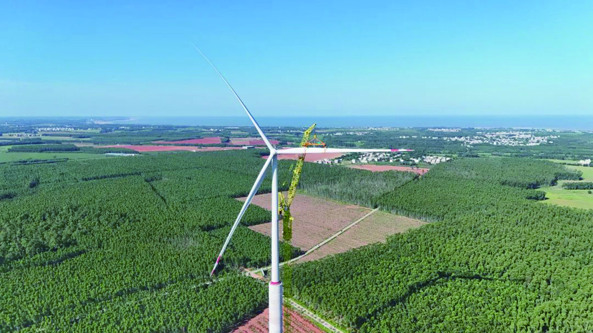 刷新全球陆上风电塔筒最高纪录的遂溪项目风机。 企业供图
